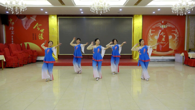 如今經過多場賽事考驗的農場本土教練,又產生了把農場退休舞蹈隊員們跳舞健身的風采拍下并上傳上網的想法。這一想法迅速得到了農場廣大姐妹們的贊同,并迅速組織排練、磨合和提高,在舞蹈表演熟練的基礎上,于是統一服裝,精心編排了“哈達”和“幸福小城”的舞蹈,讓農場職工和廣大網民見證了淮海老年職工的舞蹈風采。圖為農場老年舞蹈隊員們在精心排練“哈達”和“幸福小城”舞蹈在優酷網上截屏時的鏡頭。