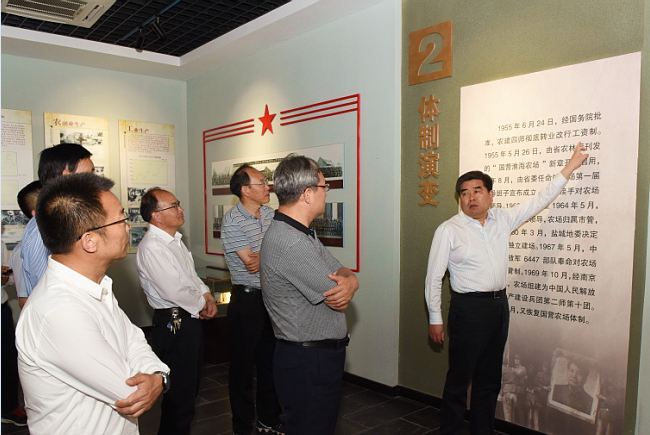 沿著農(nóng)建四師紀(jì)念碑雕像,毛澤東主席關(guān)于生產(chǎn)待命、建設(shè)農(nóng)場(chǎng)的命令碑文和農(nóng)建四師暨淮海農(nóng)場(chǎng)歷史陳列館,鄧慶海看得認(rèn)真,聽(tīng)得仔細(xì),不時(shí)記下珍貴史料。農(nóng)建四師紀(jì)念碑雕像的含義,毛主席命令碑文,陳列館中的許多老照片、老物件和軍墾文化的情況介紹,鄧慶海都了然于心,對(duì)有的圖片、文字,他還掏出手機(jī)拍照留存。鄧慶海強(qiáng)調(diào),農(nóng)建四師是一支英雄的部隊(duì),陳列館內(nèi)史料豐富、內(nèi)容詳實(shí),是一個(gè)軍墾傳統(tǒng)文化教育的好平臺(tái)。今后要繼續(xù)發(fā)揮好陳列館的紅色教育作用,繼承發(fā)揚(yáng)“艱苦奮斗、勇于奉獻(xiàn)、開(kāi)拓創(chuàng)新”的蘇墾精神,讓更多人的思想在這里得到軍墾傳統(tǒng)文化的洗禮。