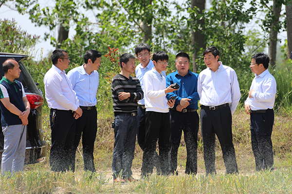 胡兆輝首先來到臨海林苗一體化項目區(qū)5009公路“鶴鄉(xiāng)綠徑”及蘇墾米業(yè)臨海米廠擬建倉儲項目區(qū)調(diào)研,肯定了臨海林業(yè)的發(fā)展。他在二生產(chǎn)區(qū)踏田察看了稻麥超高產(chǎn)栽培及配套技術(shù)千畝示范片的麥子長勢、長相,了解臨海麥田管理及三夏工作的開展情況;在三生產(chǎn)區(qū),對蘇墾農(nóng)發(fā)智慧農(nóng)業(yè)園項目區(qū)及配套設(shè)施建設(shè)和綠化規(guī)劃情況作了詳細(xì)了解。在四生產(chǎn)區(qū),胡兆輝步入正在收割的麥田,仔細(xì)察看麥田機械收割情況,又來到微噴灌育秧的秧畦邊細(xì)心察看、了解水稻育秧及無人機飛防情況。他勉勵現(xiàn)場工作的年輕農(nóng)技人員,希望他們努力在干事創(chuàng)業(yè)中成長。