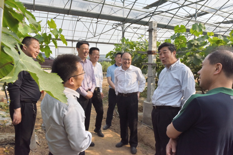 胡兆輝在淮海高效種植園區(qū)參觀,連棟大棚內(nèi)青翠的葡萄架下掛滿了葡萄。他信步走上前去察看葡萄的長(zhǎng)勢(shì)情況,并詳細(xì)詢問了葡萄的品種及市場(chǎng)生產(chǎn)銷售情況,以及淮海其他瓜果苗木的生產(chǎn)情況。他要求,淮海要在產(chǎn)品質(zhì)量提升、品牌包裝和市場(chǎng)拓展上下功夫,爭(zhēng)取創(chuàng)造更大的市場(chǎng)。