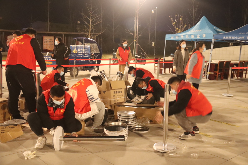 一名黨員就是一面旗幟。黨員志愿者們身穿紅馬甲,忙碌的身影,時(shí)時(shí)穿梭在機(jī)關(guān)門口、立新公園采樣點(diǎn)之間,成為夜空下一抹靚麗的風(fēng)景線。搬運(yùn)隔離欄,擺放桌椅,搭起遮陽(yáng)篷,拉起警戒線,布設(shè)指引標(biāo)志,劃定一米線,配齊消毒液、醫(yī)療廢物垃圾桶,對(duì)現(xiàn)場(chǎng)布置進(jìn)行查漏補(bǔ)缺,只為居民群眾提供一個(gè)安全有序的核酸檢測(cè)環(huán)境。