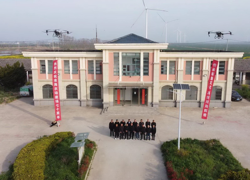 為體現(xiàn)本單位特色,七分場社區(qū)工會決定選擇日出時分和當(dāng)下最先進的農(nóng)田植保機大疆T40表達對農(nóng)場的滿腔熱愛。為拍攝視頻,全體工作人員于10日凌晨五點有序排列在七分場海堤上等待日出,配合音樂,全心投入錄制視頻,用整齊劃一的口號表達了對農(nóng)場的祝福。“實力淮海、創(chuàng)新淮海、和諧淮海、美麗淮海”,一聲聲響亮的口號,是七分場全體工作人員的心聲,也代表著淮海人對農(nóng)場深深的愛意和祝福。在接下來的工作中,他們將堅守崗位、嚴(yán)格履職,用實際行動確保淮海發(fā)展勢頭持續(xù)穩(wěn)定,喜迎農(nóng)場成立70周年大慶。