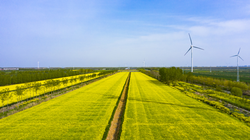 金燦燦的油菜花海沐浴著陽光,盡展芳容,讓人們陶醉其中。春風里,花浪搖曳著曼妙舞姿,訴說著春天的無限美好,盛開的油菜花與鑲嵌其間的麥苗相互掩映。