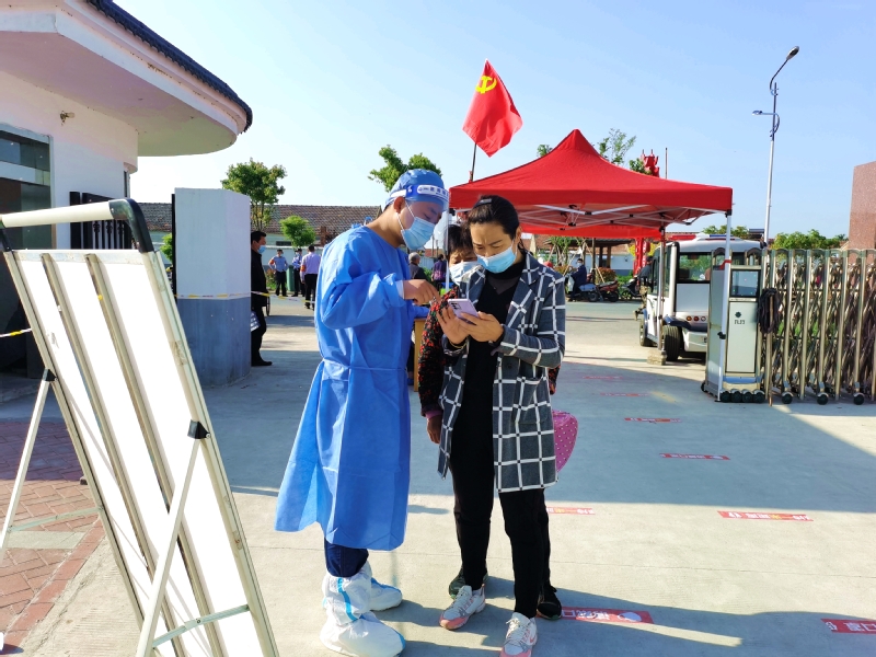 我在崗,您省心。“能做一點是一點,疫情防控是我們大家共同的事。”姜明亮是社區機關黨支部一名預備黨員,當他得知5月3日夜班值班人員臨時有事便主動請纓,從晚上八點到次日早晨八點,他把承諾當做責任來踐行。5月4日農場組織全員核酸檢測,他一掃夜班值守的疲憊,直奔迎湖健身廣場核酸采樣點,背上消毒機進行現場環境消殺。劉圩小學采樣點,只見一位“小藍”手拿擴音喇叭對著居民喊話:“病毒無情人有情,健康連著你我他,請大家保持一米線。”經過仔細辨認大家才認出她是社區財務劉玉。“平時聲音不大,維持秩序時聲音倒不小。”大家紛紛為她點贊。“您好,請出示身份信息。”三分場工作人員劉昕身穿白色防護服,正忙著采集身份信息。朝陽下,汗水浸透了衣衫、曬紅了臉頰,他卻沒有一聲抱怨。當天他共采集490個信息,這也是他連續五次完成三分場采集點數據采集任務。