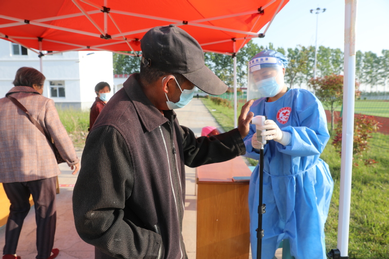 黨有號召,團有行動。一大早,農場公司青年黨員、團員來到現場,維持秩序、督促掃碼測溫、認真核對居民身份信息,以實際行動書寫志愿精神,用奮勇爭先詮釋青年力量。