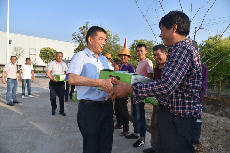 在倉儲部門口,公司黨委書記、董事長郭世平,黨委副書記、總經理吳善河率公司領導班子成員為89名勞務外包一線工作人員送去了清甜涼爽的黃金瓜,同時親切地詢問了一線員工的身體狀況和工作情況,對他們的辛勤付出表示感謝,并千萬叮囑大家炎夏期間注意避暑、保重身體,合理安排工作時間,避開高溫酷暑時段,也希望他們能夠深刻感受到公司黨委的人文關懷和“在廠如同在家”的幸福感。