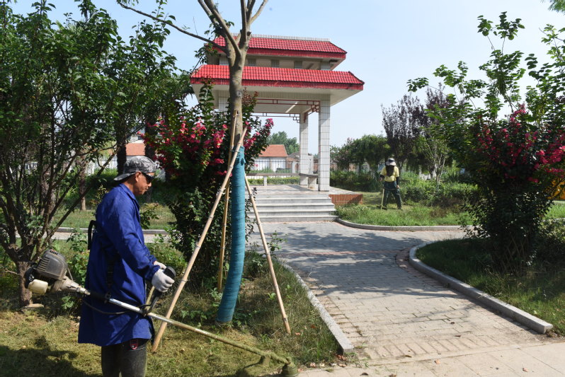 713早上7時,在淮海路北側的路邊微型公園里,三名環衛職工身負割草機,伴隨著隆隆的機器轟鳴聲,他們就已經在忙著清理草坪了據了解,最近他們的工作重點是修整草坪灌木綠地,維持好綠化帶的整潔美觀形象“經過我們的勞動每當看到公共綠地上的草坪被修剪得整整齊齊,就覺得一天的勞作沒有白辛苦。”環衛葉師傅在稍作休息之余時。在與他們交談中了解到,他們除了修剪草坪外,還有許多諸如種花栽樹、剪枝除草、澆水抗旱、挖塘施肥、河道保潔、垃圾清運等工作,哪里需要哪里上,他們一直以服從指揮而為整個農場的美麗環境進行精心地維護著。“每一項工作都要有人去打理,雖然環衛工作辛苦,但我既然選擇了這一行,就把活干好,畢竟農場美麗我光榮嘛!”葉師傅感言道