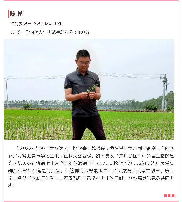 為充分展示“學習達人”風采,根據射陽縣“強國復興有我”群眾性主題宣傳教育活動安排,射陽宣傳推出“訪學習達人看家鄉變化”主題尋訪萬里行活動第一期,在全縣5月份最厲害的11名“學習達人”中,淮海的“學習達人”馮輝、陳祥、崔慧慧、劉玉華躋身其中,讓我們一起來聽聽淮海的“學習達人”們在工作中、生活上的心得感悟吧!圖為淮海學員“學習達人”們的心聲感悟。