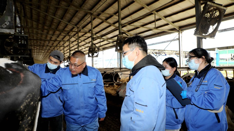 東旺奶牛公司生態(tài)養(yǎng)殖示范場存欄奶牛4800余頭,日常的奶牛管護(hù)、產(chǎn)后護(hù)理、轉(zhuǎn)群分群及病牛治療等工作任務(wù)十分繁重,獸醫(yī)組嚴(yán)格遵循“日巡查+周例會+月巡診”的工作機(jī)制,通過巡棚查看、巡診交流,全面了解掌握牛只的健康與成長狀況,做到有檢查、有治療、有回診,保障疫病防控和奶產(chǎn)品安全供給。“每個月,周主管都會定期帶我們進(jìn)行巡診,現(xiàn)場診斷指導(dǎo),我們的業(yè)務(wù)水平有了明顯提升,工作起來也更得心應(yīng)手了。”獸醫(yī)組工作人員楊華說。東旺奶牛公司始終堅持人才強(qiáng)企理念,通過師帶徒、老帶新和技術(shù)培訓(xùn)、技術(shù)交流等形式,不斷提升獸醫(yī)人員專業(yè)技能水平,奶牛乳房炎、腸炎、蹄病等疾病發(fā)生率有效降低,在牧場提單產(chǎn)、降成本、增成效方面發(fā)揮出積極作用,助力東辛畜牧業(yè)高質(zhì)量發(fā)展。
