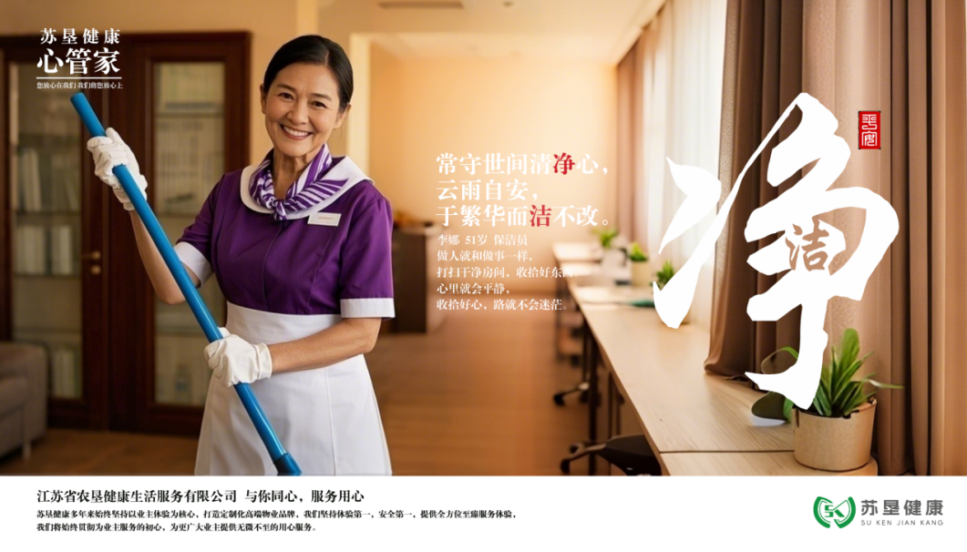 蘇墾健康制定嚴(yán)謹(jǐn)?shù)谋嵙鞒膛c標(biāo)準(zhǔn),從公共區(qū)域的日常清掃、垃圾清運(yùn),到各專間的深度清潔、消毒除臭,每個(gè)環(huán)節(jié)都嚴(yán)格把控。配備先進(jìn)清潔設(shè)備與環(huán)保清潔用品,確保服務(wù)區(qū)域始終整潔、明亮,為業(yè)主帶來舒適的視覺與體感體驗(yàn)。