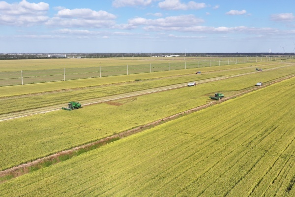“地里看不到人,但是一切都在掌握。”蘇墾農發(fā)臨海分公司副總經理馮衛(wèi)東沿著田間小路巡視稻田,說起今年的種植、收獲情況了如指掌。他的種田秘籍就是稻田里的攝像頭、空中的無人機。