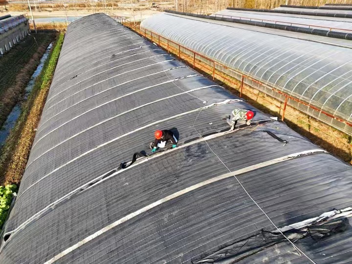 “把保溫膜拉得緊一些,主要是接縫處要全部覆蓋,否則影響保溫效果。”12月1日,在園區(qū)的12號(hào)溫室大棚,工作人員楊維祥和竇雙雙正在修復(fù)破損的外保溫被。“百合花遇到寒冷天氣也會(huì)‘感冒’,必須營造良好的室內(nèi)溫度。”楊維祥一邊固定保溫棉被一邊介紹,保溫棉被不僅能夠減少熱量的散失,還能保持土壤濕度,為大棚百合花創(chuàng)造相對(duì)穩(wěn)定的生長環(huán)境。為保證保溫效果,他們還特別注意保溫棉被的覆蓋密度和固定方式,確保大棚里的百合花都能平穩(wěn)抵御低溫。