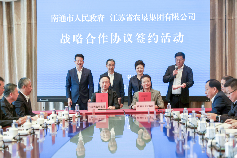 11月5日,集團(tuán)公司與南通市人民政府戰(zhàn)略合作協(xié)議簽約活動(dòng)在南通舉行,標(biāo)志著墾地合作邁入寬領(lǐng)域、深層次的新階段。集團(tuán)公司黨委書(shū)記、董事長(zhǎng)吳本輝,南通市委副書(shū)記、市長(zhǎng)張彤見(jiàn)證簽約并致辭。集團(tuán)公司領(lǐng)導(dǎo)劉耀武、鄧國(guó)新,南通市領(lǐng)導(dǎo)保德林、劉洪、李玲參加簽約活動(dòng)。吳本輝在致辭中回顧了江蘇農(nóng)墾與南通市深厚的歷史淵源。他指出,近年來(lái)江蘇農(nóng)墾深化落實(shí)“建設(shè)現(xiàn)代農(nóng)業(yè)大基地、大企業(yè)、大產(chǎn)業(yè)”,持續(xù)推進(jìn)三大工程,打造“一核引領(lǐng)、雙擎驅(qū)動(dòng)”的現(xiàn)代農(nóng)業(yè)航母,積極謀劃“十五五”戰(zhàn)略規(guī)劃,聚焦大種業(yè)、大農(nóng)業(yè)、大食品,做強(qiáng)核心主業(yè),提升醫(yī)藥健康、城鄉(xiāng)綜合服務(wù)等優(yōu)勢(shì)產(chǎn)業(yè),同時(shí)布局生物技術(shù)等戰(zhàn)新產(chǎn)業(yè)。他表示,南通是全國(guó)聞名的“魚(yú)米之鄉(xiāng)”,雙方有著良好的合作基礎(chǔ),未來(lái)將持續(xù)聚焦農(nóng)業(yè)科技創(chuàng)新、食品精深加工、農(nóng)產(chǎn)品供應(yīng)鏈運(yùn)營(yíng)、食品園區(qū)項(xiàng)目建設(shè)、生物技術(shù)戰(zhàn)投等領(lǐng)域開(kāi)展合作,希望圍繞本次合作任務(wù)清單,精心組織,形成合力,打造出可復(fù)制、可推廣、具有全省乃至全國(guó)示范引領(lǐng)效應(yīng)的墾地融合發(fā)展南通樣板,為譜寫(xiě)鄉(xiāng)村全面振興新篇章貢獻(xiàn)堅(jiān)實(shí)力量。張彤感謝省農(nóng)墾集團(tuán)長(zhǎng)期以來(lái)給予南通發(fā)展的大力支持。她表示,作為江蘇農(nóng)墾的重要生產(chǎn)基地,南通積極促進(jìn)一二三