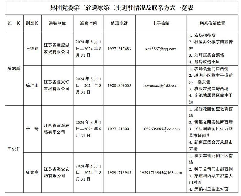 根據集團黨委統一部署,8月1日,集團黨委巡察組已完成第二輪第二批4家被巡察黨組織進駐工作。各被巡察單位分別召開巡察進駐動員會。會上,集團黨委巡察組組長作動員講話,深入學習貫徹習近平總書記關于黨的自我革命的重要思想和關于巡視工作的重要論述,通報集團黨委第二輪巡察工作重點和任務安排,對扎實開展巡察工作提出要求。本輪巡察,集團黨委巡察組將聚焦“兩個維護”根本任務和推進黨的自我革命“九個以”實踐要求,緊扣因地制宜發展新質生產力、國企改革深化提升行動和“建設現代農業大基地、大企業、大產業”等重大任務,全面貫徹黨的巡視工作方針,圍繞政治巡察“四個聚焦”監督重點,緊盯權力和責任,緊盯“一把手”和領導班子,緊盯群眾反映強烈的問題,開展政治監督,查找政治偏差,推動被巡察單位各項工作高質量發展,為打造現代農業航母、加快建設一流企業、構建“清風在田”廉潔生態體系提供堅強保障。集團黨委巡察組將在被巡察單位現場工作一個月。巡察期間,設專門值班電話、電子信箱、聯系信箱等,主要受理涉及被巡察單位領導班子及其成員、相關重點崗位干部(含已離退休、已調離)的問題反映。巡察組在第二批被巡察單位受理信訪時間截止到2024年8