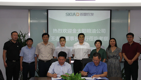 8月16日,山東七河生物科技股份有限公司董事長蘇耜同一行到訪蘇墾農發股份公司總部,集團公司總經理、蘇墾農發股份公司董事長胡兆輝,集團公司黨委委員、蘇墾農發股份公司總裁蘇志富與蘇耜同董事長舉行了會談