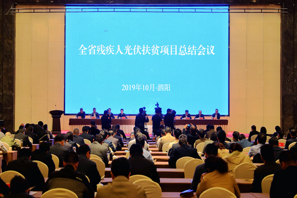 10月31日,全省殘疾人光伏扶貧項目總結會議在宿遷市泗陽縣召開,省委副書記任振鶴出席并講話。省慈善總會會長蔣宏坤出席會議。集團公司黨委書記、董事長魏紅軍在會上發言,黨委副書記、總經理胡兆輝出席會議