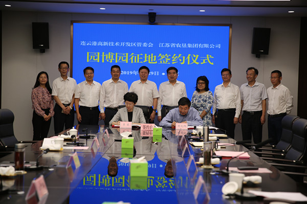 9月29日,集團公司與連云港高新區在南京簽署園博園征地租地框架協議。集團公司黨委書記、董事長魏紅軍、總經理胡兆輝、總會計師劉克英,連云港市政府副市長陳書軍、連云港高新區管委會主任李莉、副主任江希路出席