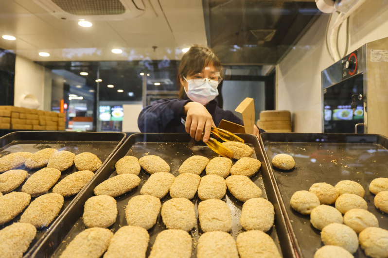 中山大廈餐飲團隊敏銳挖掘民眾口味喜好,精心研發出蔥香、桂花、紅豆等風味的燒餅系列產品。目前,“燒餅系列”日營收從最初的2000元提升至4500元,不到10個月,已累計實現營收近百萬元。