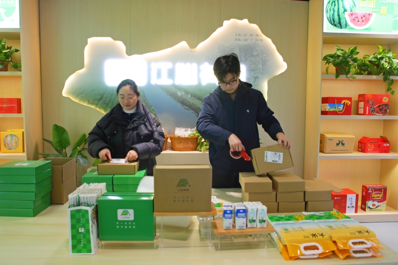 3月13日,江心沙江心有田拼多多門店下單數超過100單,圖為工作人員忙著打包發貨。據了解,一季度以來,江心沙通過“線上營銷+線下推銷”齊發力,實現普通大米、功能性大米、糧油等農產品銷售額達100余萬元。