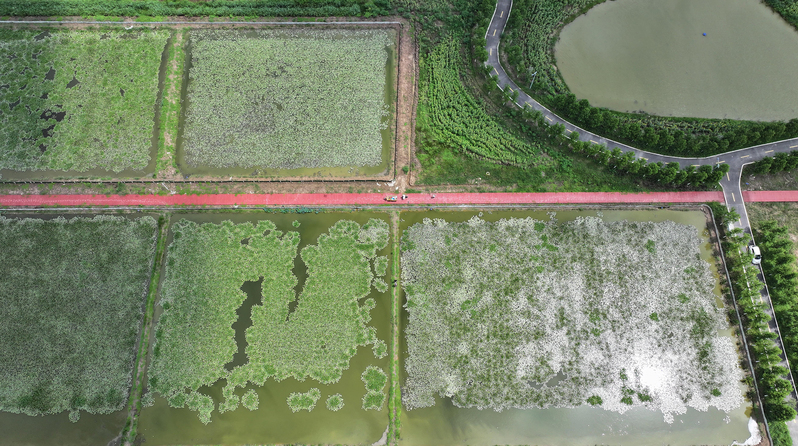 在云臺農(nóng)場云水灣濕地公園,40畝荷塘甲魚、60畝蟹蝦以及80畝魚塘相映成趣,通過“一水多用、種養(yǎng)循環(huán)”的生態(tài)模式,既守護了濕地生機,更孕育出獨具特色的休閑垂釣新業(yè)態(tài)。