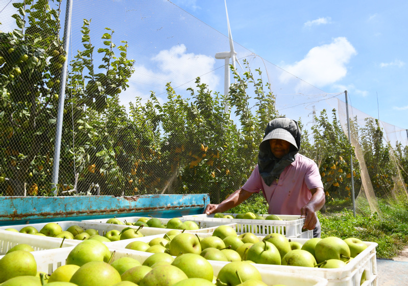 日前,三河農(nóng)場生態(tài)梨園正式開園采摘,滿樹的翠玉梨掛滿枝頭,果實飽滿、色澤誘人。圖為工作人員正在認真挑選、精心包裝,將大小均勻、品質(zhì)優(yōu)良的梨子裝入精美的包裝盒。