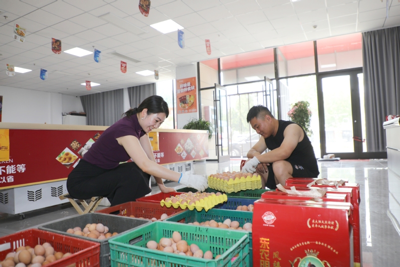 近日,東辛農場首批自營養殖的初生蛋一上線就備受追捧,線上預約通道開啟僅2小時,330斤初生蛋就被搶訂一空,上演了“秒搶”場面。圖為工作人員正在分揀打包初生蛋。