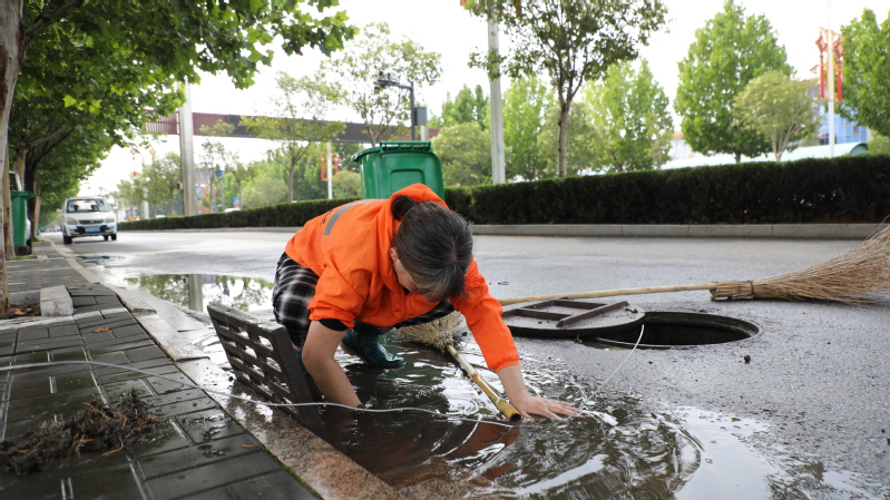 近日,受持續降雨影響,東辛農場公園門口人行道出現積水現象,環衛部門迅速行動,組織人員、機械清理淤積下水道,全力保障道路暢通。
